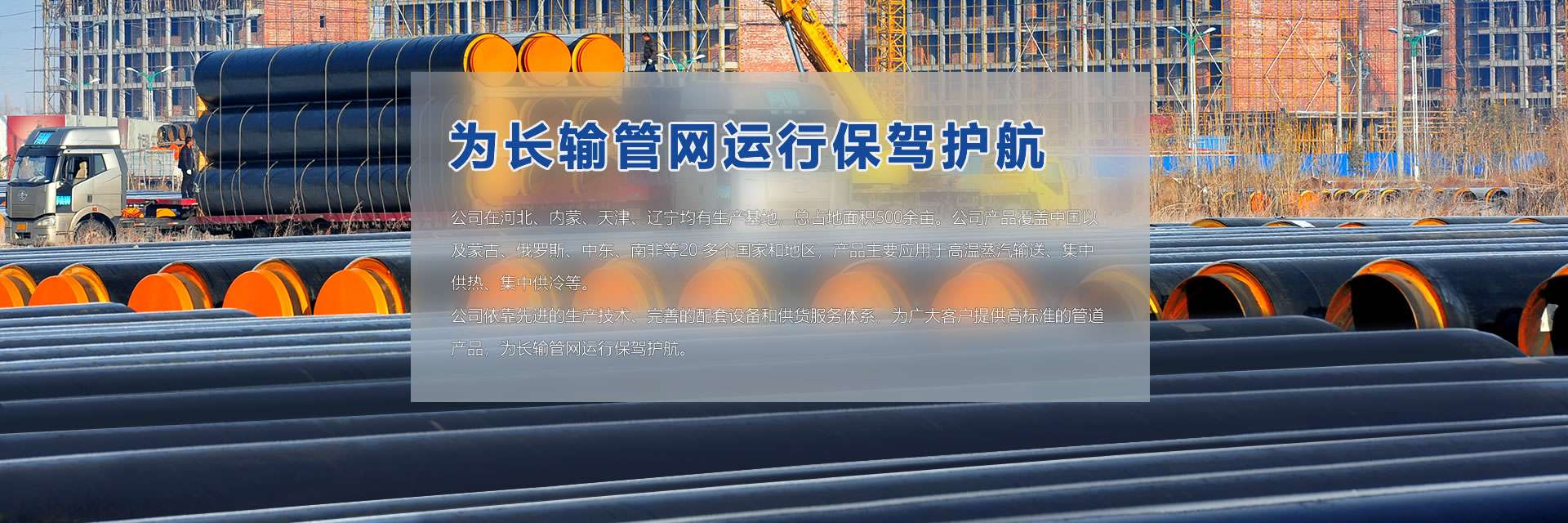 公司在河北、內蒙、天津、遼寧均有生產基地,總占地面積500余畝。公司產品覆蓋中國以及蒙古、俄羅斯、中東、南非等20 多個國家和地區,產品主要應用于高溫蒸汽輸送、集中供熱、集中供冷等。